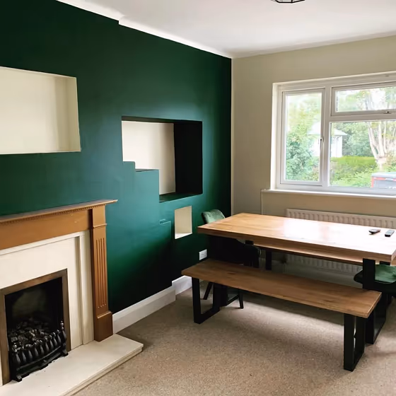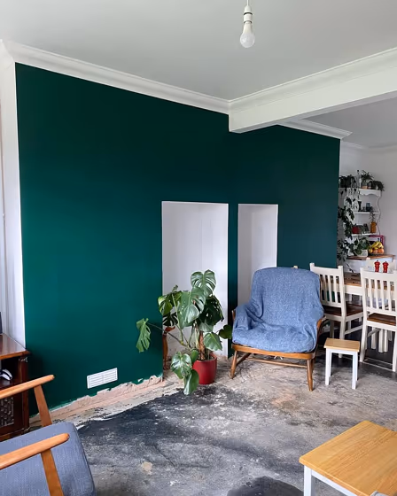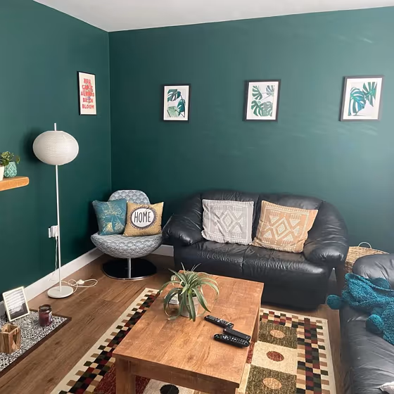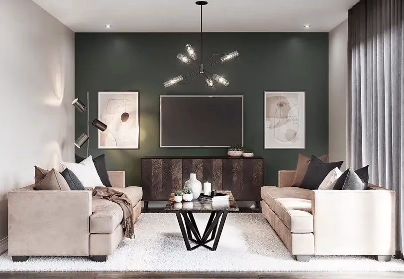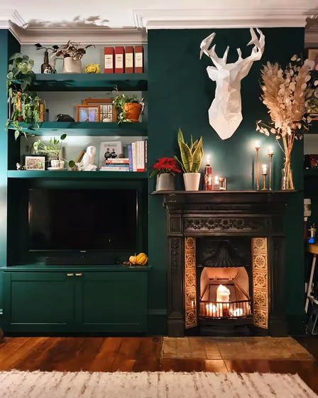 Check out this stunning Dark color used in real living rooms. Explore how this Green shade can create a unique space