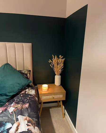 This color scheme is a combination of two shades that are opposite each other on the color wheel. The high contrast between these colors creates a vibrant and dynamic visual effect. For the color Pine Needle with a green hue, complementary colors are those with a red hue close to 339, such as Dulux Decadent Damson and Himalayan Musk 6.