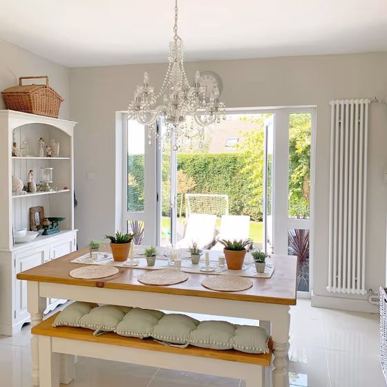 - Warmer hues make larger spaces feel more inviting