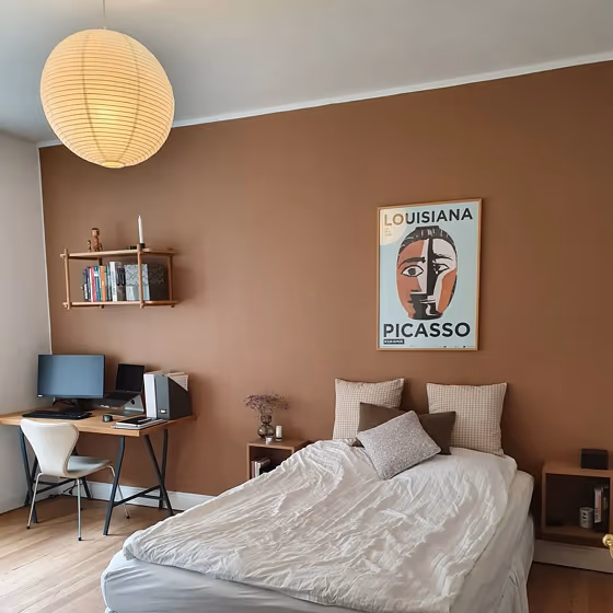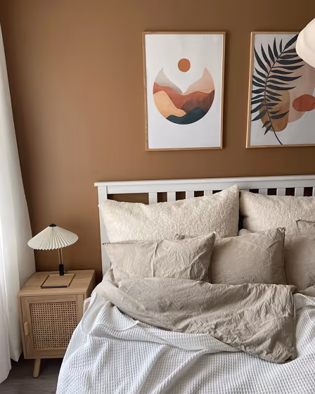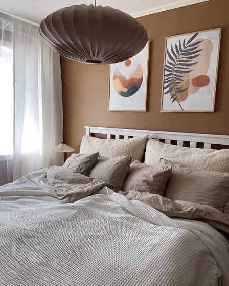 We’ve hand-picked a beautiful collection of photos of this amazing Beige shade used in real bedrooms. Take a look and imagine how this wonderful warm Mid-tone paint color could transform your own bedroom space.