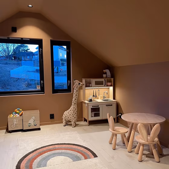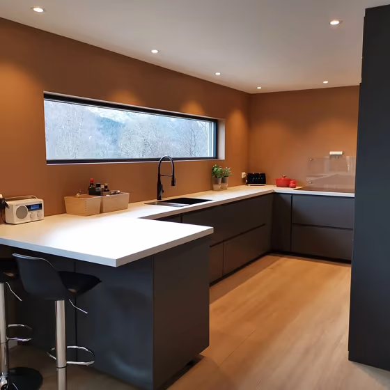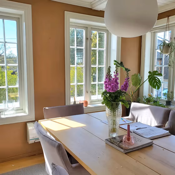 This color scheme is a combination of two shades that are opposite each other on the color wheel. The high contrast between these colors creates a vibrant and dynamic visual effect. For the color Adventure with a red hue, complementary colors are those with a green hue close to 206, such as Jotun Nordic Breeze and Gustavian Blue.
