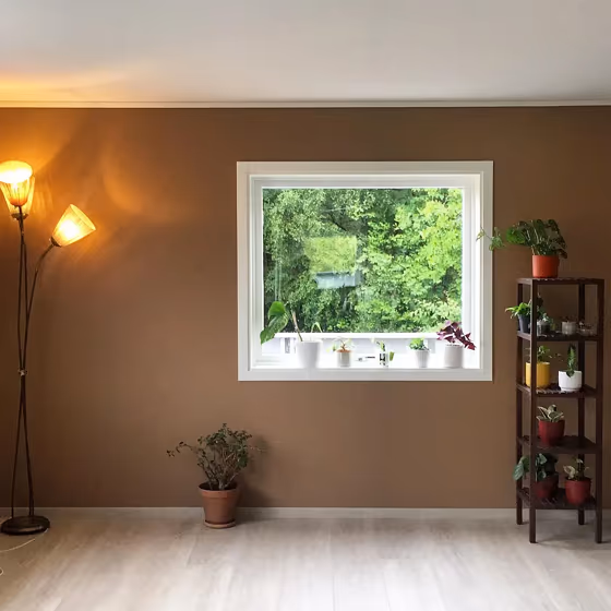 Act like a pro: When choosing paint with an LRV of 25.21%, pay attention to your bulbs' brightness. Light brightness is measured in lumens. The lower the paint's LRV, the higher lumen level you need. Every square foot of room needs at least 40 lumens. That means for a 200 ft2 living room you’ll need about 8000 lumens of light – e.g., eight 1000 lm bulbs.