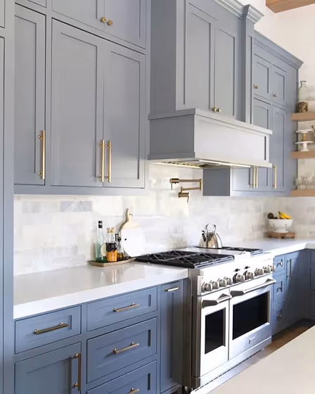 Want a stylish kitchen? View real-life photo examples of this fascinating cool hue is paired with backsplashes, countertops, and hardware.