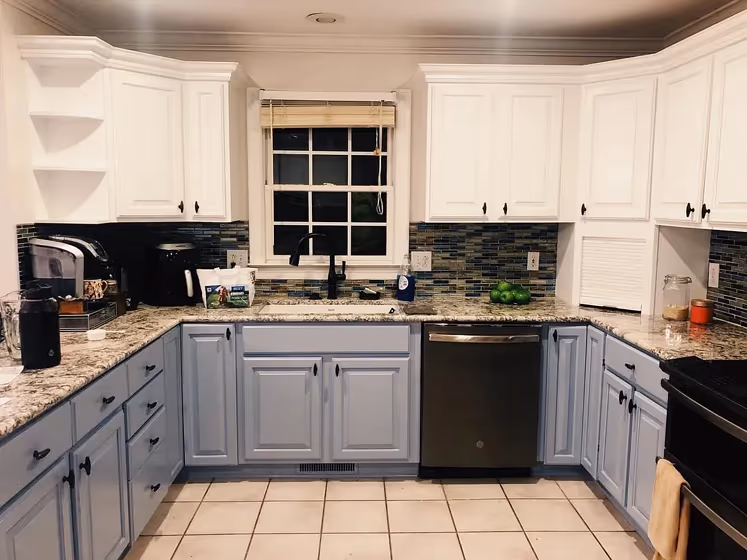 Sherwin Williams SW 6241 on kitchen cabinets (3 photos)