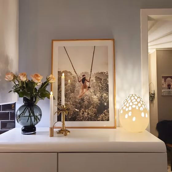 Act like a pro: When choosing paint with an LRV of 59.12%, pay attention to your bulbs' brightness. Light brightness is measured in lumens. The lower the paint's LRV, the higher lumen level you need. Every square foot of room needs at least 40 lumens. That means for a 200 ft2 living room you’ll need about 8000 lumens of light – e.g., eight 1000 lm bulbs.