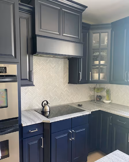 Want a stylish kitchen? View real-life photo examples of this fascinating cool hue is paired with backsplashes, countertops, and hardware.