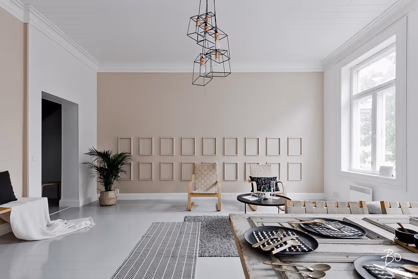 Elevate your space with Tikkurila H466 Angora, a warm and inviting hue that exudes timeless elegance. This soft beige tone, also known as Angora, pairs seamlessly with earthy neutrals like Tikkurila G497 Sandstone and deep greens like Tikkurila V426 Juniper. Complement the soothing undertones of Angora with accents in Tikkurila Y358 Amber and Tikkurila T422 Chestnut for a harmonious color palette that brings serenity and sophistication to any room. Experience the versatility of Tikkurila H466 Angora as it effortlessly transforms your space into a sanctuary of style and comfort.