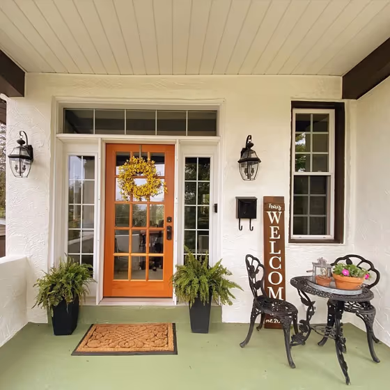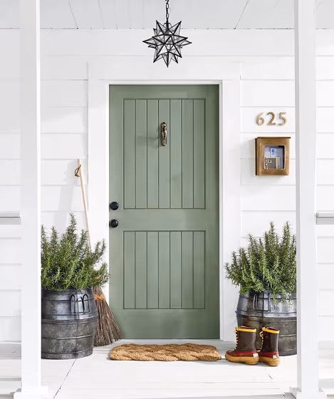 Looking for a fresh new look for your house exterior or starting from skretch? We’ve collected pictures of real-life homes that have been painted with this warm hue. Find inspiration for your house’s exterior, front doors, gates, shutters, frames or windows.