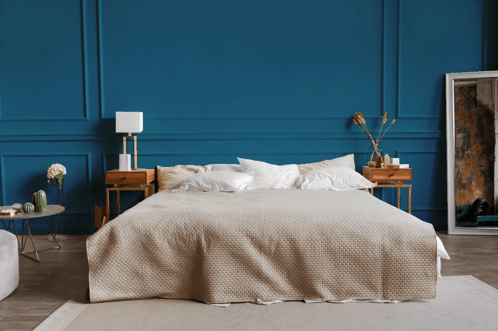- Cool blue shades make a room feel sleek, fresh, and modern, perfect for bedrooms, bathrooms, and home offices where a sense of calm and sophistication is desired.