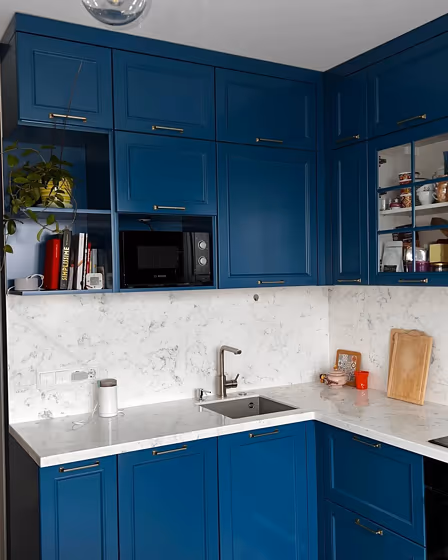 Want a stylish kitchen? View real-life photo examples of this fascinating cool hue is paired with backsplashes, countertops, and hardware.