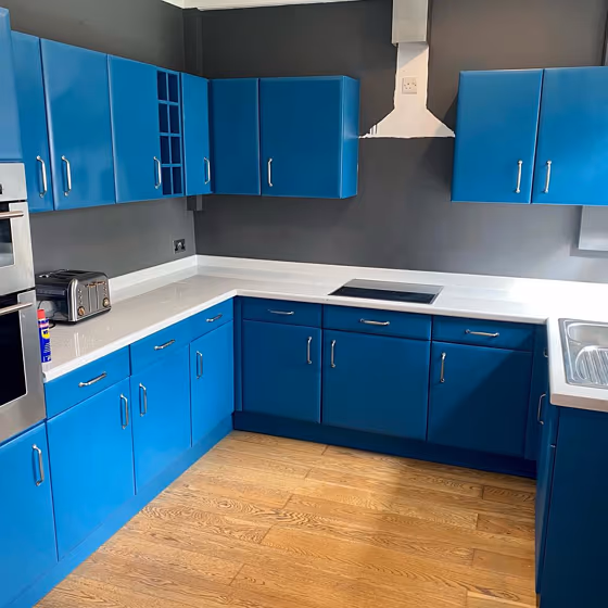 RAL Classic RAL 5009 on kitchen cabinets (6 photos)