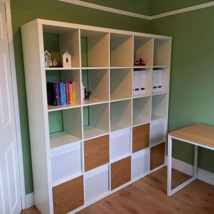 Let’s dive into a full Bamboo Stem paint color review. Take a look at pictures of real interiors and exteriors painted with beautiful 30GY 41/173. Find out if this gorgeous warm green paint color would look great on your living room walls or trims, kitchen cabinet, bedroom accent wall, bathroom or house exterior.