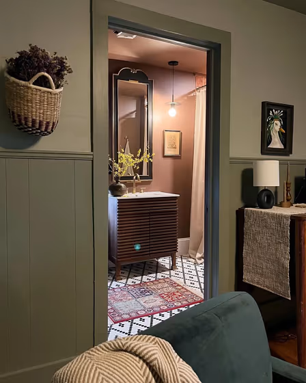 View the photos of real spaces painted with this that were not included in specific categories.Close-ups, painted furniture, storages and dressers, hallways, stairs and ceilings.