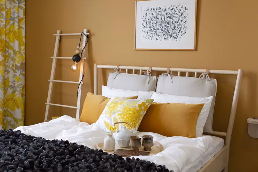 - Warm yellow shades bring a sunny and cheerful atmosphere to a space, making it feel lively and welcoming, perfect for kitchens, living rooms, and play areas.