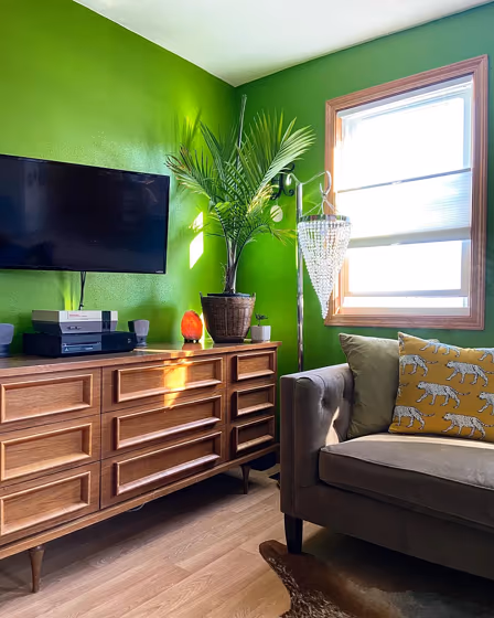 Check out this stunning Dark color used in real living rooms. Explore how this green shade can create a unique space