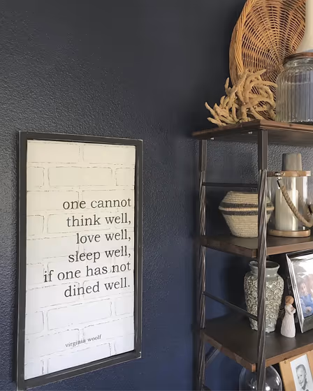 Behr Starless Night (PPU14-20) is a rich and deep hue that exudes elegance and sophistication. This color pairs beautifully with soft, neutral tones like warm beige and creamy ivory to create a timeless and luxurious look. For a more dramatic contrast, consider combining Starless Night with shades of pale pink or dusty mauve to add a touch of glamour to your space. Whether used as an accent wall or incorporated into furnishings and decor, this versatile color adds depth and personality to any room.