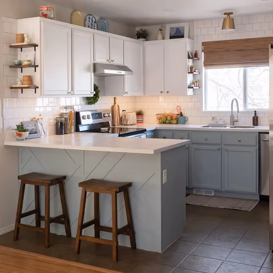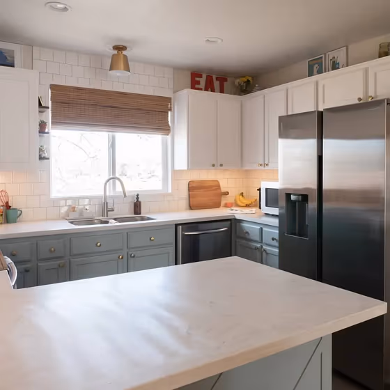 Want a stylish kitchen? View real-life photo examples of this fascinating cool hue is paired with backsplashes, countertops, and hardware.