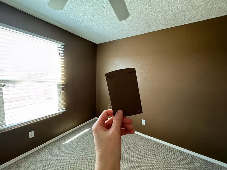 Act like a pro: When choosing paint with an LRV of 17.74%, pay attention to your bulbs' brightness. Light brightness is measured in lumens. The lower the paint's LRV, the higher lumen level you need. Every square foot of room needs at least 40 lumens. That means for a 200 ft2 living room you’ll need about 8000 lumens of light – e.g., eight 1000 lm bulbs.