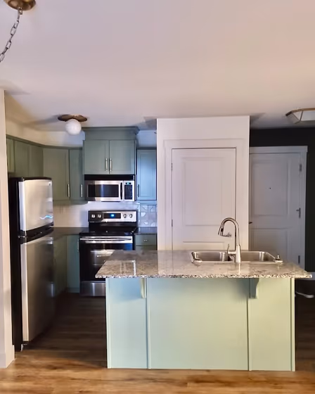 Benjamin Moore 453 on kitchen cabinets (3 photos)