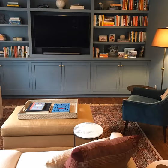 Check out this stunning Mid-tone color used in real living rooms. Explore how this Blue shade can create a unique space