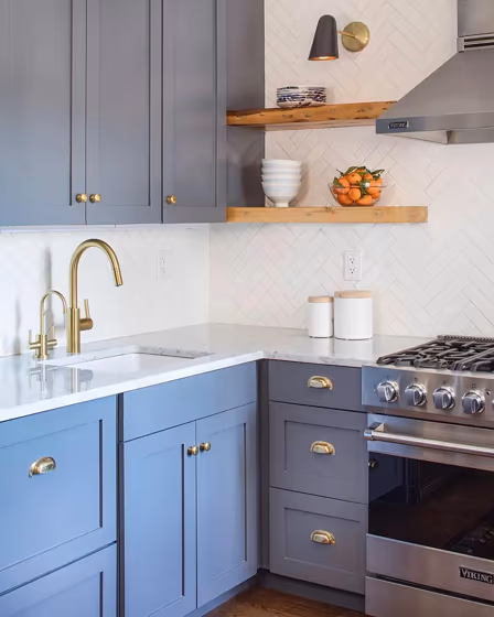 Want a stylish kitchen? View real-life photo examples of this fascinating cool hue is paired with backsplashes, countertops, and hardware.