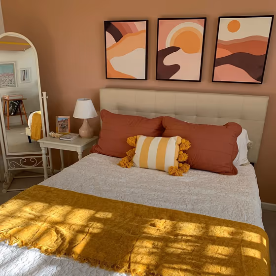 We’ve hand-picked a beautiful collection of photos of this amazing Beige shade used in real bedrooms. Take a look and imagine how this wonderful warm Mid-tone paint color could transform your own bedroom space.