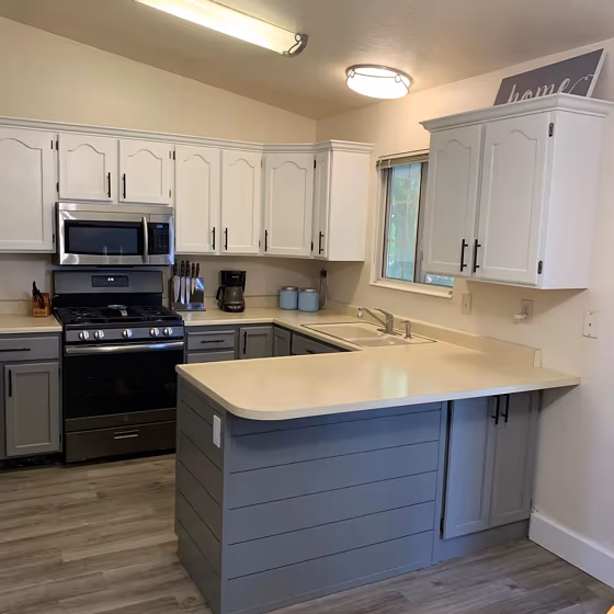 Benjamin Moore CC-548 on kitchen cabinets (5 photos)