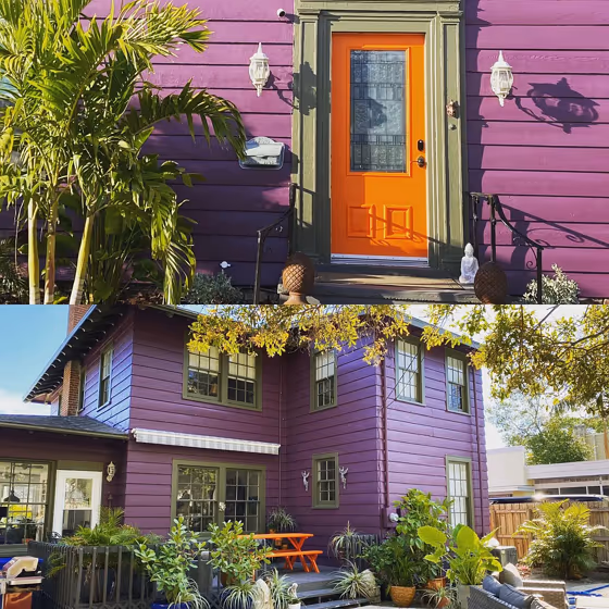Looking for a fresh new look for your house exterior or starting from skretch? We’ve collected pictures of real-life homes that have been painted with this warm hue. Find inspiration for your house’s exterior, front doors, gates, shutters, frames or windows.