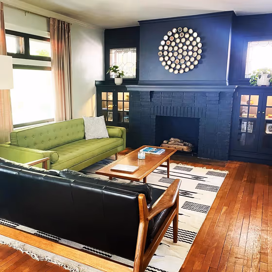 Check out this stunning Dark color used in real living rooms. Explore how this Blue shade can create a unique space
