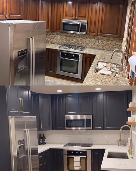 Want a stylish kitchen? View real-life photo examples of this fascinating cool hue is paired with backsplashes, countertops, and hardware.