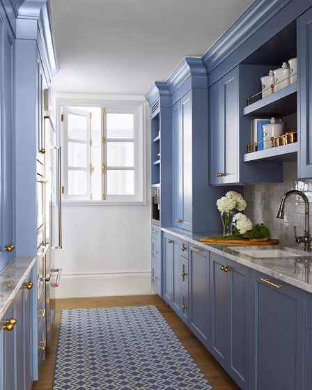 Want a stylish kitchen? View real-life photo examples of this fascinating cool hue is paired with backsplashes, countertops, and hardware.