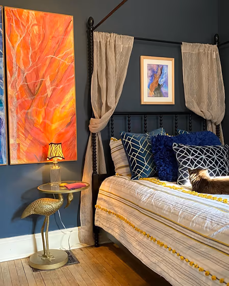 - Cool blue shades make a room feel sleek, fresh, and modern, perfect for bedrooms, bathrooms, and home offices where a sense of calm and sophistication is desired.