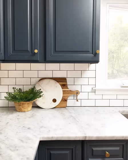 Want a stylish kitchen? View real-life photo examples of this fascinating cool hue is paired with backsplashes, countertops, and hardware.