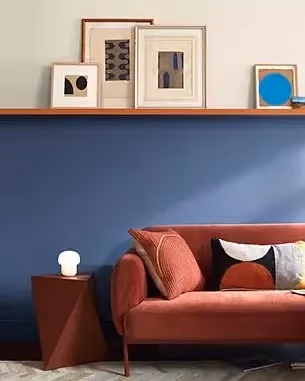 This color scheme is a combination of two shades that are opposite each other on the color wheel. The high contrast between these colors creates a vibrant and dynamic visual effect. For the color Blue Nova with a blue hue, complementary colors are those with a orange hue close to 40, such as Benjamin Moore Woodcliff Lake and Silver Fox.