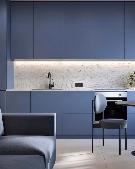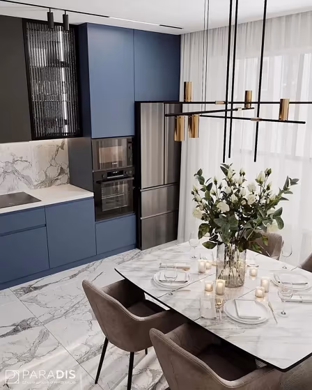 Want a stylish kitchen? View real-life photo examples of this fascinating cool hue is paired with backsplashes, countertops, and hardware.