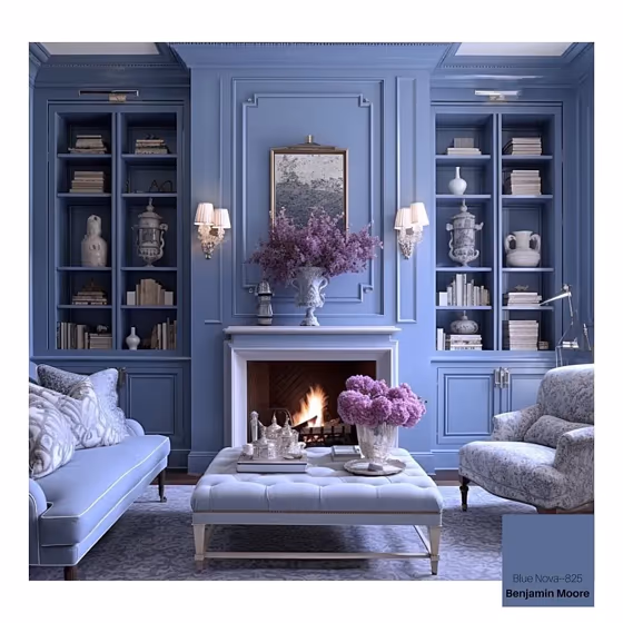 Transform your space with the serene beauty of Benjamin Moore 825 Blue Nova. This calming shade of blue, with its hints of grey, evokes a sense of tranquility and sophistication. Blue Nova pairs perfectly with warm neutrals like Benjamin Moore White Dove (OC-17) or cool tones such as Benjamin Moore Stonington Gray (HC-170). Whether used as an accent or as the main color, Blue Nova brings a sense of peace and elegance to any room. Embrace the versatility of Blue Nova and create a harmonious color palette that radiates timeless style.