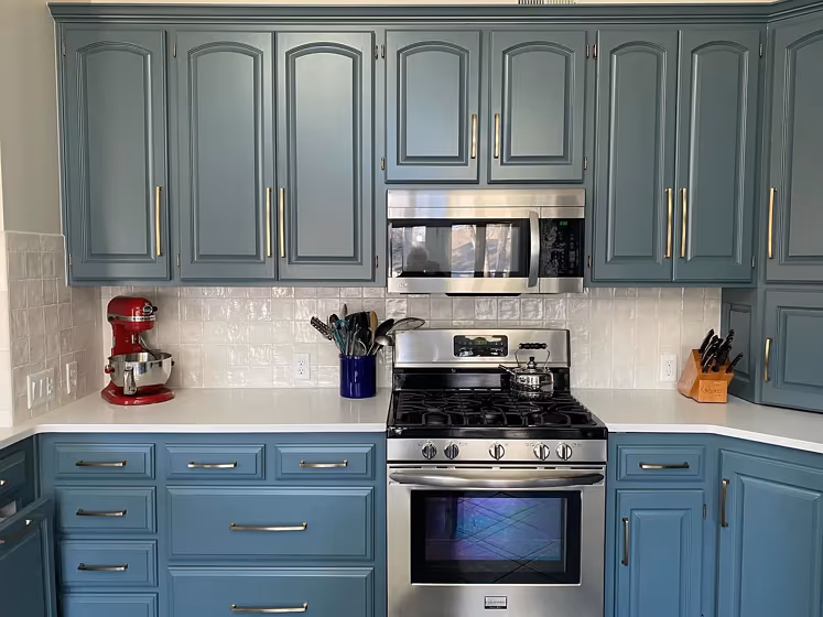 Want a stylish kitchen? View real-life photo examples of this fascinating cool hue is paired with backsplashes, countertops, and hardware.