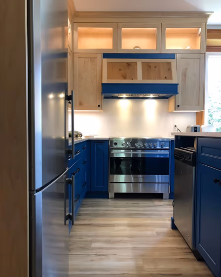 Want a stylish kitchen? View real-life photo examples of this fascinating cool hue is paired with backsplashes, countertops, and hardware.