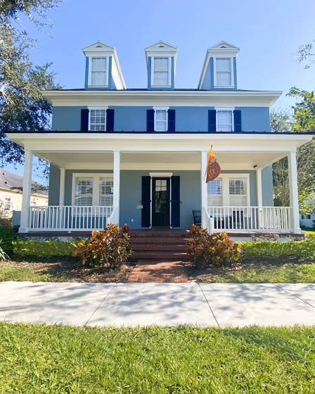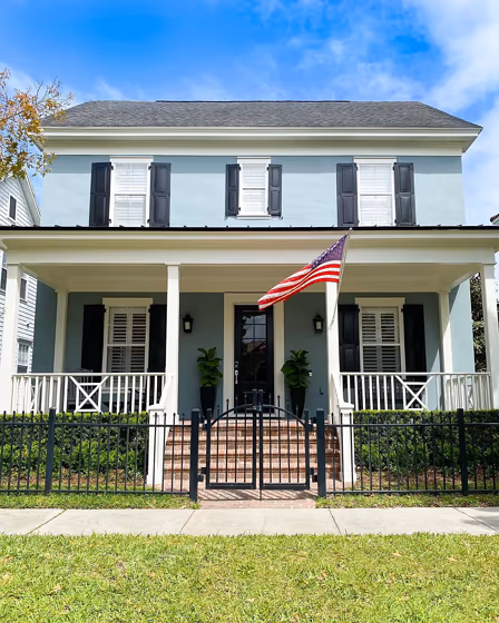 Looking for a fresh new look for your house exterior or starting from skretch? We’ve collected pictures of real-life homes that have been painted with this cool hue. Find inspiration for your house’s exterior, front doors, gates, shutters, frames or windows.