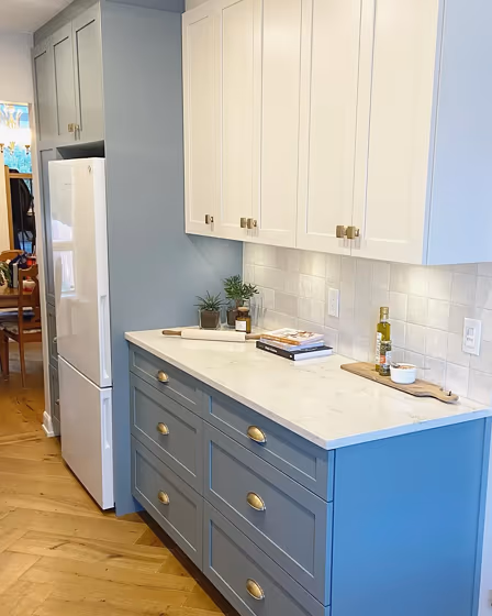 Want a stylish kitchen? View real-life photo examples of this fascinating cool hue is paired with backsplashes, countertops, and hardware.