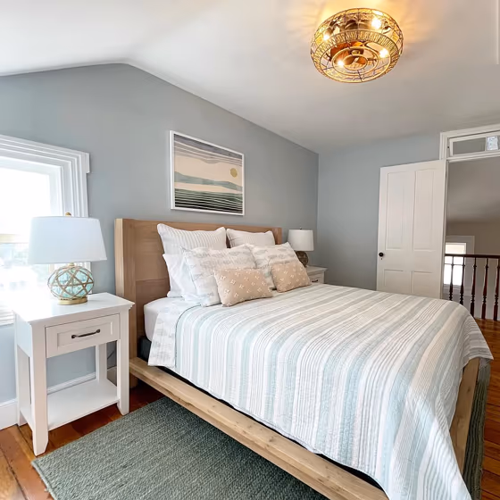 Benjamin Moore's 1633 Brittany Blue brings a touch of serenity to any space, evoking the calmness of a tranquil sea. This versatile color pairs beautifully with warm neutrals like beige or taupe, creating a soft and sophisticated look. For a more vibrant combination, consider pairing Brittany Blue with accents in shades of coral or peach for a refreshing and lively feel. Whether used as a main color or as an accent, Brittany Blue adds a sense of elegance and tranquility to any room.