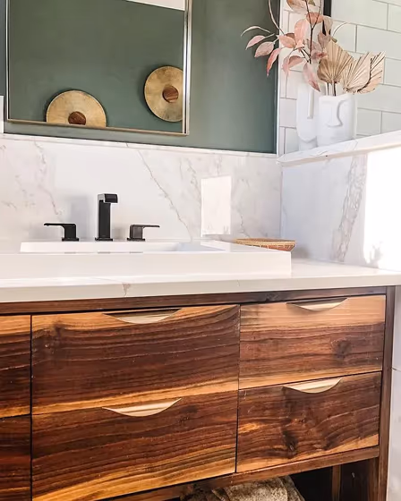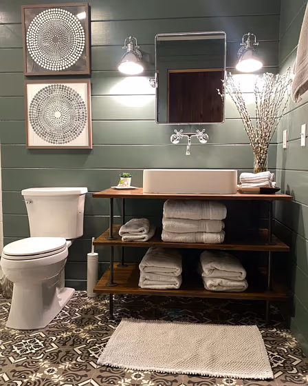 - Cool green shades bring a refreshing and tranquil vibe to a space, making it feel rejuvenating and connected to nature, ideal for bathrooms, bedrooms, and living rooms.
