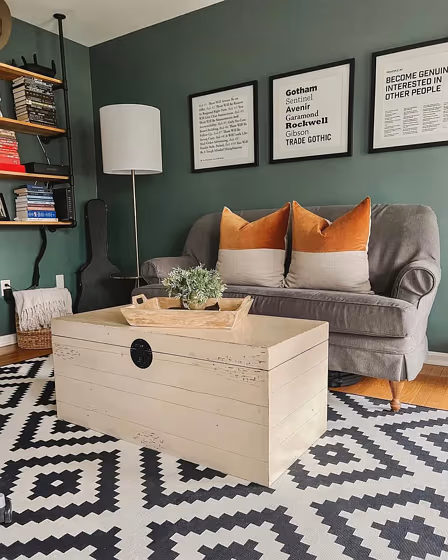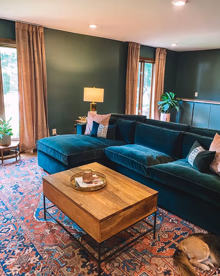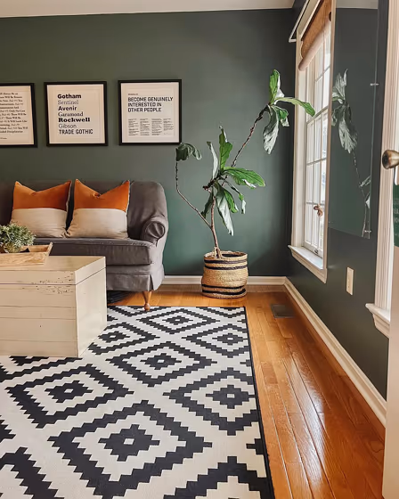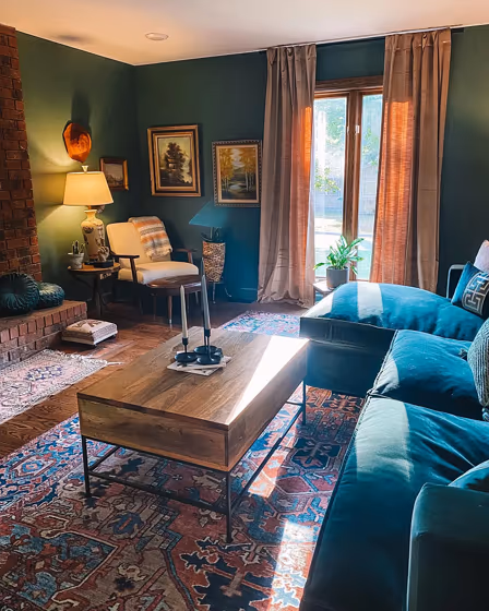 Check out this stunning Dark color used in real living rooms. Explore how this Green shade can create a unique space