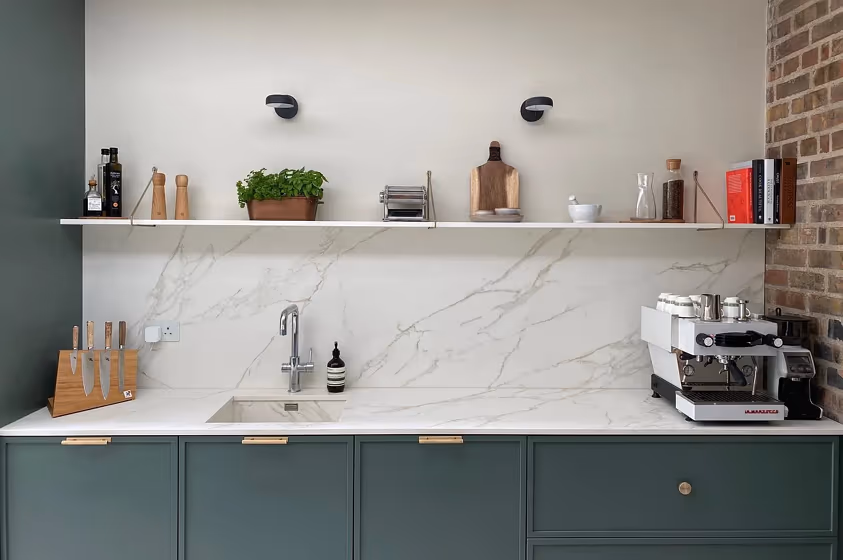 Want a stylish kitchen? View real-life photo examples of this fascinating cool hue is paired with backsplashes, countertops, and hardware.