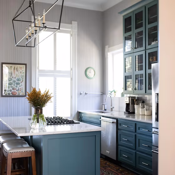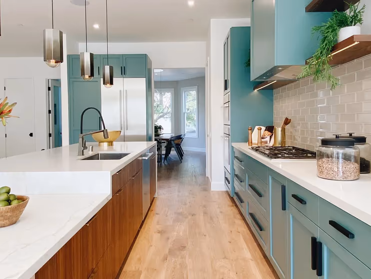 Want a stylish kitchen? View real-life photo examples of this fascinating cool hue is paired with backsplashes, countertops, and hardware.