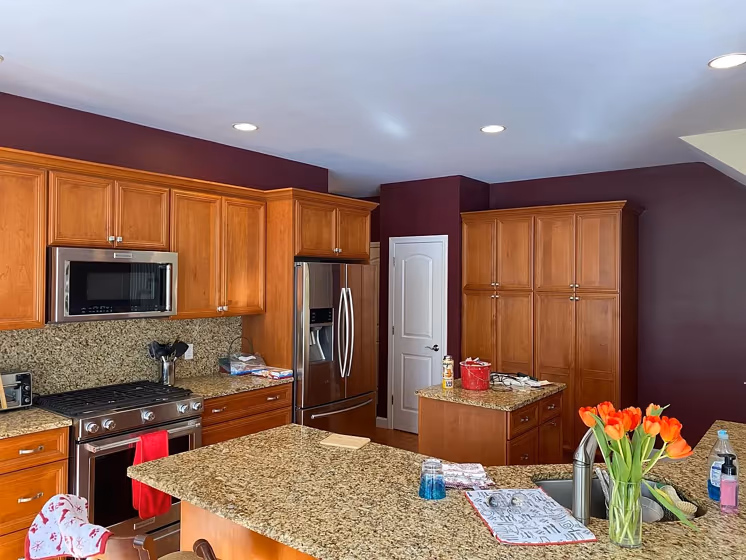 View the photos of real spaces painted with this red that were not included in specific categories.Close-ups, painted furniture, storages and dressers, hallways, stairs and ceilings.