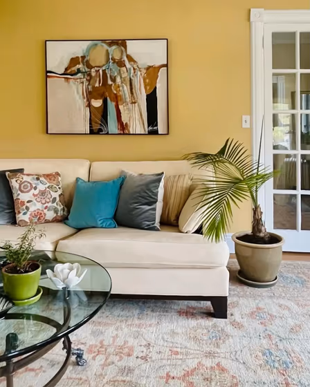 - Warm yellow shades bring a sunny and cheerful atmosphere to a space, making it feel lively and welcoming, perfect for kitchens, living rooms, and play areas.