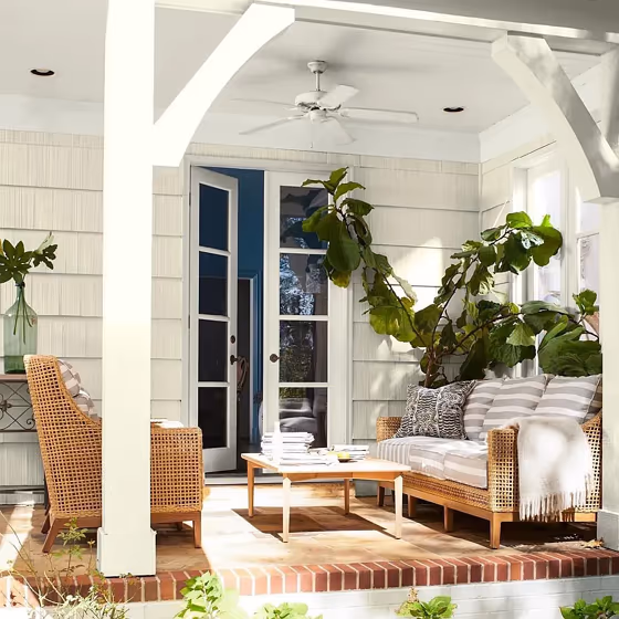 Looking for a fresh new look for your house exterior or starting from skretch? We’ve collected pictures of real-life homes that have been painted with this warm hue. Find inspiration for your house’s exterior, front doors, gates, shutters, frames or windows.