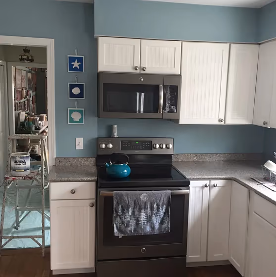 Benjamin Moore 2136-50 on kitchen cabinets (3 photos)
