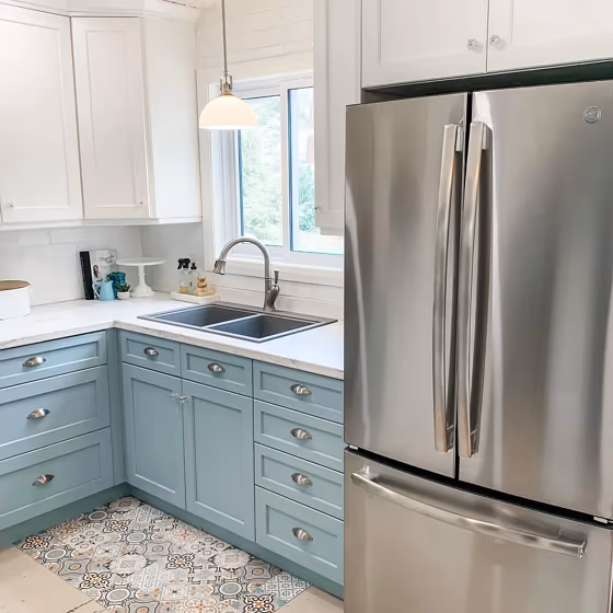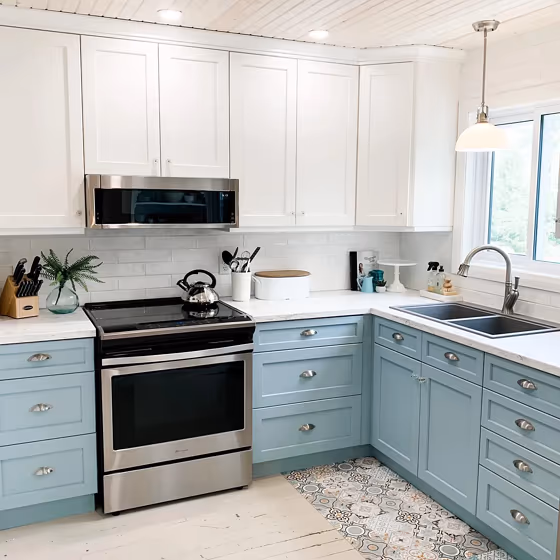 Want a stylish kitchen? View real-life photo examples of this fascinating cool hue is paired with backsplashes, countertops, and hardware.